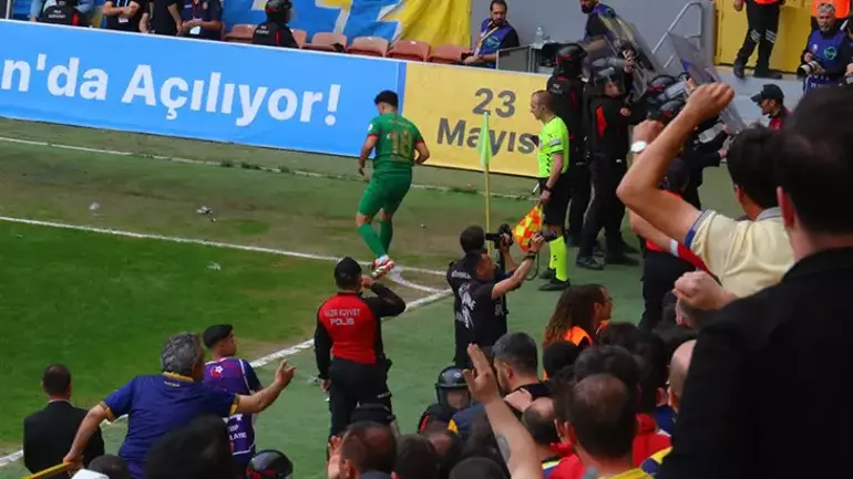 Çıkan olaylar sebebiyle maç 2 dakika geç başlatıldı. Karşılaşmanın 9. dakikasında ise Amed Sportif Faaliyetler'in kazandığı köşe vuruşunda taraftarlar, korner diğerinin olduğu bölgeye su şişesi attı.