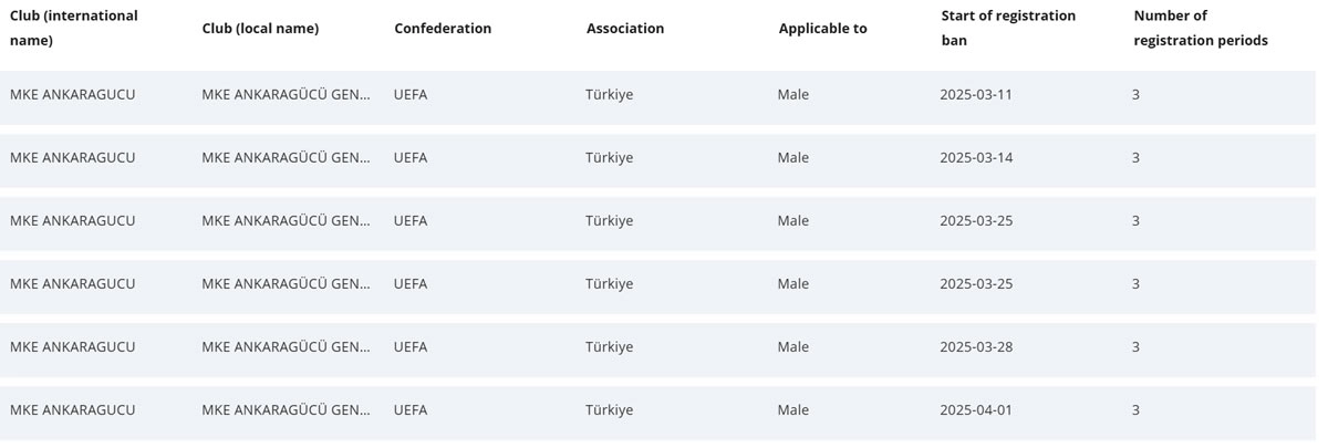 FIFA bugün Ankaragücü'ne bir dosyadan daha 3 dönem transfer yasağı getirdi.