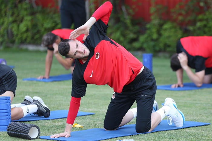 Isınma hareketleriyle süren idman, yarı sahada çift kale maçla sona erdi.