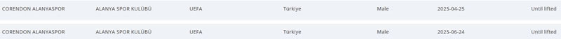 Daha önce 1 dosyadan yasağı bulunan Alanyaspor'a dosya parası ödenene kadar, daha önce 3 dosyadan yasağı bulunan Eyüpspor'a 3 dönem transfer yasağı getirdi.
